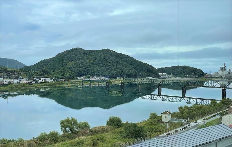 熊野川が鏡のようになって、景色をきれいに映しだしています。