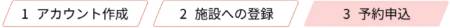 「3.予約申込」については、施設利用までの流れの「予約」のところを確認してください。